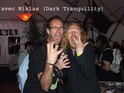 Bah très cool justement, ils nous ont vu avec notre appareil photo venant vers eux et n'ont pas hésités à prendre la photo avec nous justement alors qu'ils sortaient de leur loge, les artistes avec qui j'ai pris des photos ont été très gentil, même Ihsahn que j'ai choppé deux secondes et est venu vers moi quand il m'a vu avec mon appareil et a discuté un petit peu avec moi...