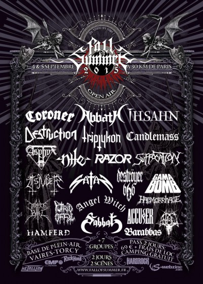 Le livret du FALL OF SUMMER festival est disponible au format pdf. Vous y trouverez le plan, un texte de présentation par groupe et d'autres informations utiles (merch, restauration...). Ne faites pas chauffer les imprimantes, la version papier vous sera distribuée à l'entrée du fest.