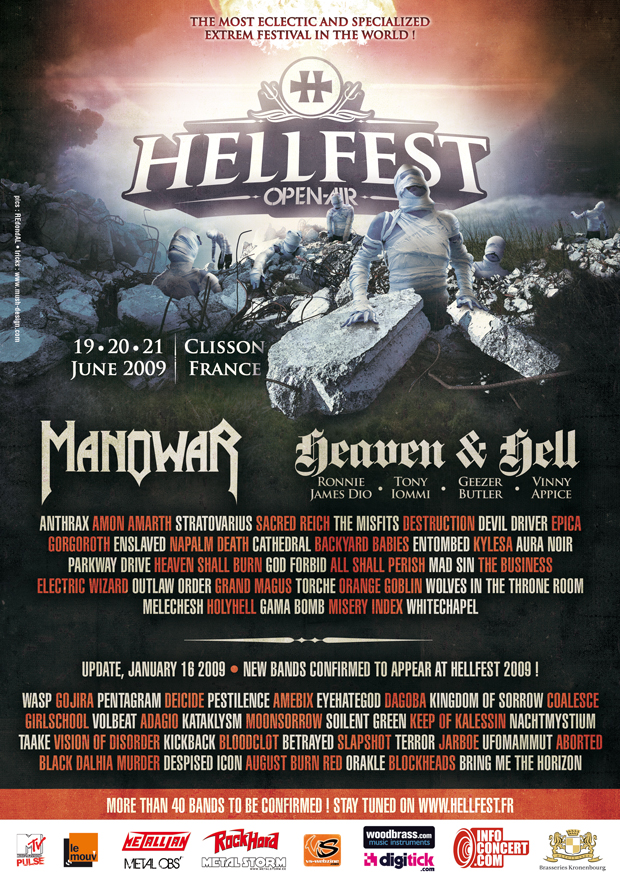 Voici la liste complète des nouveaux groupes confirmés à l'affiche du HELLFEST 2009 qui aura lieu les 19, 20 et 21 Juin à Clisson :