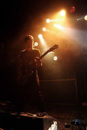 Les Américains de DUB TRIO installent leur imposant matériel et entament leur set avec l'excellent « Bay vs. Leonard ». Le son est TRES fort, et les nombreux effets équipant la formation sont évidemment fortement mis à contribution : nuées de pédales pour le guitariste et le bassiste, pads électroniques pour le batteur… le moins qu'on puisse dire est que les ambiances développées sont riches. Peut-être même trop riches, le trio se perdant régulièrement dans des séquences d'improvisation à grands renforts de bidouillages divers et variés, faisant certainement ressortir par là cette facette dub quelque peu passée sous silence sur « Another Sound Is Dying ». L'essentiel de ce dernier opus sera d'ailleurs joué ce soir, pour ne pas dire réinterprété, tant les morceaux se retrouvent transfigurés par les agréments sonores qui leur sont adjoints, à tel point qu'on se perd nous aussi un peu tout au long du set. Ni pose, ni costumes, même si on ne manquera pas de remarquer le t-shirt « loup hurlant à la pleine lune » du guitariste. La performance de DUB TRIO durera une heure et quart, plus un rappel introduit par un sample du « South Of Heaven » de Slayer, avant que le batteur, barbe et crâne rasé agrémenté d'un bandeau de tennisman, remercie le public.