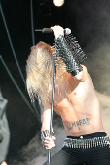 J'avoue sans vergogne que TYR ne faisait pas partie de ma culture musicale avant ce Party San 2008… et pour cause, le groupe donne dans un folk metal tout mignon qui tranche radicalement avec KAMPFAR. Poil pectoral et jolies chansonnettes à trois voix sont au programme du groupe des Iles Féroé, rien de bien irritant en somme mais il y a mieux à faire que s'enfiler 45 minutes de cette guimauve dans les oreilles. De quoi se poser des questions sur les choix de la programmation mais quand on sait que les Teutons raffolent de ces groupes folkloriques, on ne s'étonne plus de rien. Pourvu qu'ils ne tombent pas sur un disque de Tri Yann ou d'Alan Stivell d'ici l'été prochain…