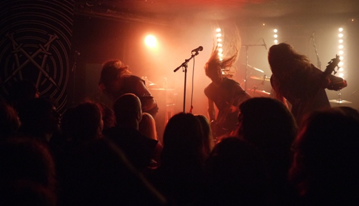 Lorsque TORTORUM monte sur scène, c'est devant un parterre qui se garni de plus en plus. Nombreux sont les curieux qui veulent découvrir les Norvégiens qui viennent de sortir leur premier essai un peu plus tôt sur World Terror Committee (présent ce soir avec un stand de merch conséquent à prix doux). Au programme des 45 minutes alloué au groupe, un black metal norvégien à l'ancienne, belliqueux et agressif, qui prend à la gorge et attaque direct ! Le black metal du quatuor (qui est en fait un duo dans le civil) est résolument bourrin. Mais il n'oublie pas des passages plus mid-tempo ravageurs qui font mal aux cervicales du public qui commence à se lâcher doucement. Sur scène, la prestation est sobre mais efficace. Le corpsepaint du groupe est crade à souhait, parsemé de sang. Mention spéciale à Skyggen, à la guitare, et à son maquillage de troll énervé. Le guitariste de droite, Specter (également dans Gravdal) est très souvent derrière ses longs cheveux et campé sur ses rangers. Le chanteur, Barghest, est lui habillé d'une robe de bure, et agresse le public avec ses vocaux décharnés et son attitude possédée. Alors certes, TORTORUM ne réinvente pas la poudre, mais dégaine ses munitions avec efficacité et énergie. Parfait pour commencer la soirée.