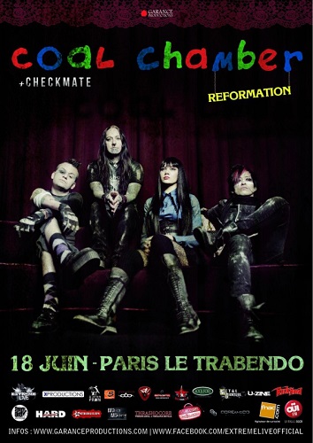 Voir COAL CHAMBER en concert à Paris en 2013. Qui l'aurait cru ? Pas grand monde, moi le premier. Et pourtant c'est bien ce qu'il s'est passé mardi soir au Trabendo. C'était un peu la soirée nostalgie, mon « Age tendre et tête de bois » à moi. Mais avant COAL CHAMBER, il y avait CHECKMATE, groupe parisien issu du collectif Klonosphère. C'est eux qui avaient charge d'ouvrir la soirée. Ce qu'ils ont plutôt bien fait d'ailleurs.