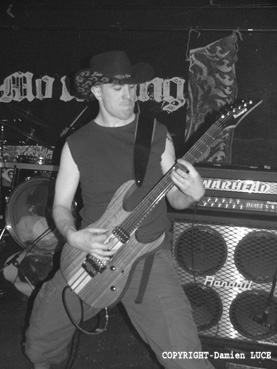 Le dernier groupe à fouler les planches est RED MOURNING. Ce groupe propose un blues métalcore à la SUPERJOINT RITUAL bien sympathique. Un groupe carré qui donne le ton tout de suite. La puissance sinon rien. On aura le droit aux excellentes chansons de leurs 3 titres éponymes comme « FLOATING UNDER » ou « NEGATIVE ». Le chanteur assure ses parties en délivrant une voix assez hardcore. Le gratteux avec son chapeau de cow-boys fait du rodéo avec ses cordes en exécutant des riffs précis. Il est bien soutenu par un rythme dynamique et plombé de la part du bassiste et du batteur. Un bon concert, j'attends avec impatience leur album qui devrait faire parler de lui. J'ai entendu parler d'une sortie courant 2005. Ne nous faîtes pas trop patienter les enfants !!!!!!!!!