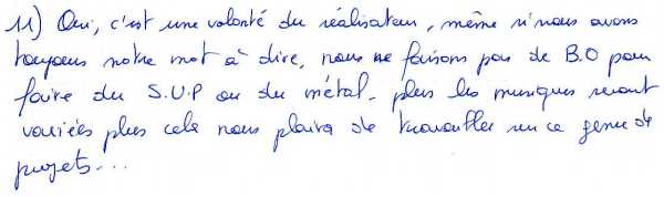 Je pense que composer des musiques de films a une grande influence sur la musique de S.U.P. C'est flagrant sur Imago avec notamment l'instrumental "Imago" et la plus grande présence des synthés. Quel est ton sentiment là dessus ?