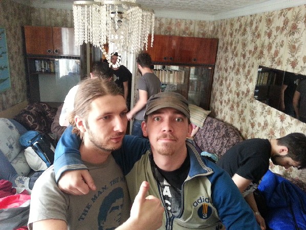 On fait la rencontre de Max, notre promoteur sur cette date. Il nous accueille chez lui, dans son appartement, nous prépare à manger, on en profite également pour se laver. Quelques shots de vodka partagés avec Max, qu'on a d'ailleurs du mal à empécher de nous resservir pour la énième fois.