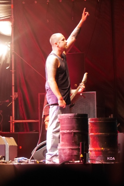 JIG-AI : Les Tchèques ont eu du mal à commencer. Des problèmes techniques les ont empêchés de débuter les hostilités à l'heure. Au final, le groupe n'a dû jouer qu'une vingtaine de minutes au lieu des 30 imparties, décalant également toute la programmation de la mainstage. Le Goregrind n'est pas ma tasse de thé, mais c'est la tradition de commencer le vendredi avec ce genre doux et mélodieux. C'est également le seul moment du festival où les Teutons sortent leurs déguisements, les paillettes et autres couvre-chef débiles et délirants. On verra notamment une bite géante, une casquette taillée dans un carton de bière. Sur scène le groupe essaie de jouer un maximum de titres, c'est-à-dire beaucoup vu qu'ils sont tous très courts et rentre-dedans. Le son est finalement excellent, et il n'y a pas à dire, même quand on n'est pas fan, le grind, c'est nickel pour soigner une gueule de bois.