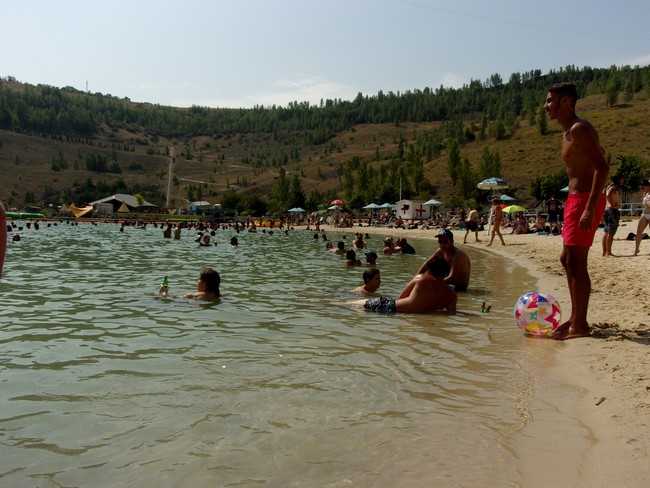 Un télésiège nous descend jusqu'au lac, au fond d'une vallée aménagée. La plage, l'eau, le soleil, on se croirait presque en vacances, le gros son en plus.