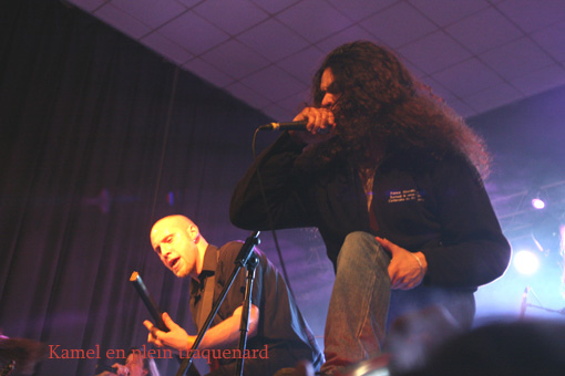 Kamel – Ah oui, effectivement. Ils m'ont fait une bonne blague, là. J'étais dehors et là y a un gars qui arrive et qui me dit « Y'a un problème avec KRONOS sur scène. Faut que tu y ailles!». Y'avait la backline d'IMMOLATION à l'arrière de la scène et j'ai tout de suite imaginé le pire. Je fonce sur scène. Le groupe ne jouait plus. Il semblait attendre quelque chose. Je déboule comme un dingue et là, Tom, le bassiste me glisse à l'oreille « Haterealm » et moi j'ai compris « Elle crame. ». « Hein ? Quoi ? Qu'est-ce qui crâme ? » et là les autres me tendent un micro et me disent « Non, non, tu vas chanter avec nous « Haterealm ». Je ne me souvenais même pas des paroles et puis merde. J'me suis lancé. J'ai pourri la chanson mais bon, je ne me suis pas dégonflé. C'est déjà ça.