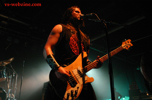 ENSLAVED se retrouve décalé et c'est pas plus mal puisqu'on pourra ainsi voir la quasi-totalité de leur prestation. Bonne idée que de commencer par deux titres du dernier album dont le fabuleux « Isa ». Le ton est donné et ENSLAVED va nous délivrer un set mémorable. Depuis que les Norvégiens se sont débarrassés des derniers colifichets folkloriques qu'ils affectionnaient tant (c'est quand même plus pratique de chanter sans casque !!!) et qu'ils ont enfin assumé leur admiration pour la musique des seventies, le groupe a élargi son horizon musical et gagné ainsi de nouveaux fans. Entre intimisme et héroïsme, ce show d'ENSLAVED va rendre volcanique l'atmosphère de la Velvet au point d'obliger la sécurité à arroser les premiers rangs et à ouvrir les portes latérales de la salle. Grutle Kjellson ne communique que très peu avec le public mais nul ne viendra débattre de son incroyable prestance sous les lights. ENSLAVED ne jouent pas, ils vivent leur musique et cette mémorable démonstration aussi spirituelle que musicale ne fera que mettre en évidence l'injustice de les avoir faits jouer dans la plus petite salle. D'un autre côté, c'est peut être grâce à cette même injustice que le son dont ils ont disposé était aussi bon… L'une des presta du week-end. (T)
