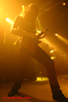 OPETH investi donc la scène et se retrouve en terrain conquis. Dès les premières notes de « The Baying of the Hounds » la salle répond présente. Mikael semble en grande forme au chant, le son est plutôt bon, les lights sont magnifiques – comme toujours me direz-vous dans cette salle – et en dehors d'un Per Wiberg légèrement sous-mixé la prestation promet. Comme chacun le sait Martin Lopez n'est pas de la partie sur cette tournée et c'est un autre Martin (Axenrot) qui se trouve derrière les fûts. Ce remplaçant n'est autre que le batteur de BLOODBATH, de SATANIC SLAUGHTER ainsi que d'une multitude de groupes suédois plus ou moins connus. On ne pourra pas le blâmer d'avoir un moindre feeling que le sieur Lopez car sa prestation fut tout de même remarquable au regard du temps de préparation dont il a bénéficié.